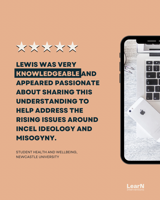 LearN Interventions can help in deepening knowledge of what Incel groups and ideology are, exploring their origins; the language and the imagery used in online spaces; and the pipeline to radicalisation. We focus on building expertise, awareness and understanding in a safe space using interactive and engaging content.